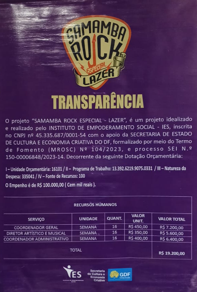OBJETO: Realização do projeto Festival Samamba Rock Especial – Lazer, em comemoração ao 34º Aniversário de Samambaia